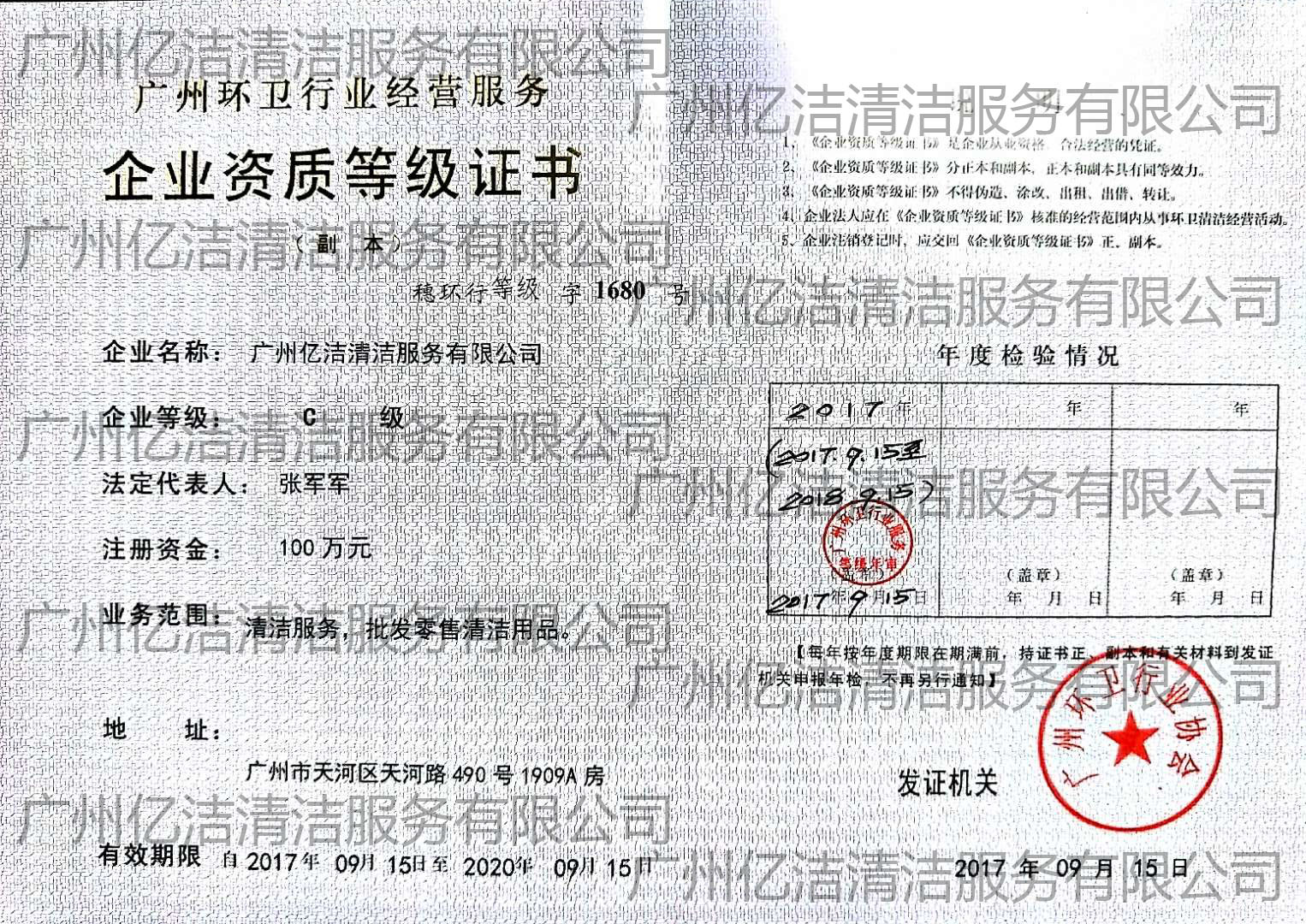 廣州億潔清潔服務(wù)有限公司是經(jīng)廣州市工商行政管理局批準(zhǔn)成立的(注冊(cè)資本:100萬(wàn)元人民幣)。具有獨(dú)立法人資質(zhì)。公司成立2015年,公司具備完善的管理體系和高素質(zhì)管理隊(duì)伍,擁有特種技術(shù)人員33名,保潔服務(wù)人員上萬(wàn)名,覆蓋廣州市,能及時(shí)調(diào)配并快速投入高效運(yùn)行。我們的每個(gè)員工都經(jīng)過(guò)公司的嚴(yán)格篩選,嚴(yán)格培訓(xùn),定期培訓(xùn)后持證上崗以保證服務(wù)品質(zhì),保障客戶的權(quán)利,利益,形象等不受損失。 廣州億潔清潔公司是一家設(shè)備齊全,技術(shù)強(qiáng)大的綜合型清潔服務(wù)公司,為客戶提供完善服務(wù)尊定了堅(jiān)定的基礎(chǔ)。 司于2010年全面推行了ISO9001質(zhì)量管理體系認(rèn)證和ISO14001國(guó)際環(huán)保體系認(rèn)證。先后獲得廣州高層建筑外墻清洗維修作業(yè)【安全資質(zhì)證書】、【廣州環(huán)衛(wèi)企業(yè)等級(jí)證書C級(jí)資質(zhì)】、廣州疾控中心頒發(fā)的【四害消殺服務(wù)資質(zhì)證】、【空氣治理A級(jí)資質(zhì)】、中國(guó)石材協(xié)會(huì)頒發(fā)的【石材資質(zhì)B級(jí)資質(zhì)】等。 廣州億潔清潔服務(wù)有限公司致力于打造專業(yè)、實(shí)惠、靠譜的保潔服務(wù)公司,把專業(yè)的事情交給專業(yè)的我們,您放心! 億潔清潔服務(wù)項(xiàng)目: 廣州保潔服務(wù):新建樓宇、別墅、酒店、醫(yī)院、辦公樓、賓館、企事業(yè)單位廠房竣工后開(kāi)荒及裝修后精細(xì)保潔.工程保潔服務(wù)。 廣州物業(yè)托管:為廣州市各大企事業(yè)單位、賓館、政府機(jī)關(guān)、小區(qū)物業(yè)、酒店及廠房提供專業(yè)化保潔、園林、設(shè)施維護(hù)等管理服務(wù)。 廣州高空作業(yè):高空玻璃幕...[詳情]